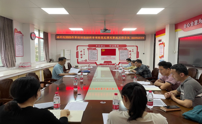 会上,陆阳清院长通报了学校于3月29日组织的本科教育教学审核评估材料专项督查工作的反馈情况,传达了学校教务处反馈的《抽查情况反馈表》,分析了我院动科、动医两个专业在教学档案、试卷、毕业论文等归档材料存在的问题。他强调,大家要提高政治站位,充分认识本科教育教学审核评估的重要性和紧迫性,以时不待我的紧迫感,行动起来。各系要严格对照本科教育教学审核评估工作要求和此次督查反馈的问题,对标对点、立行立改。同时更希望各系凝心聚力,加强协同,牢固树立全院“上下一盘棋”思想,密切配合,协同作战,把各项任务做细、做实、做好,按时保质完成全部整改工作。