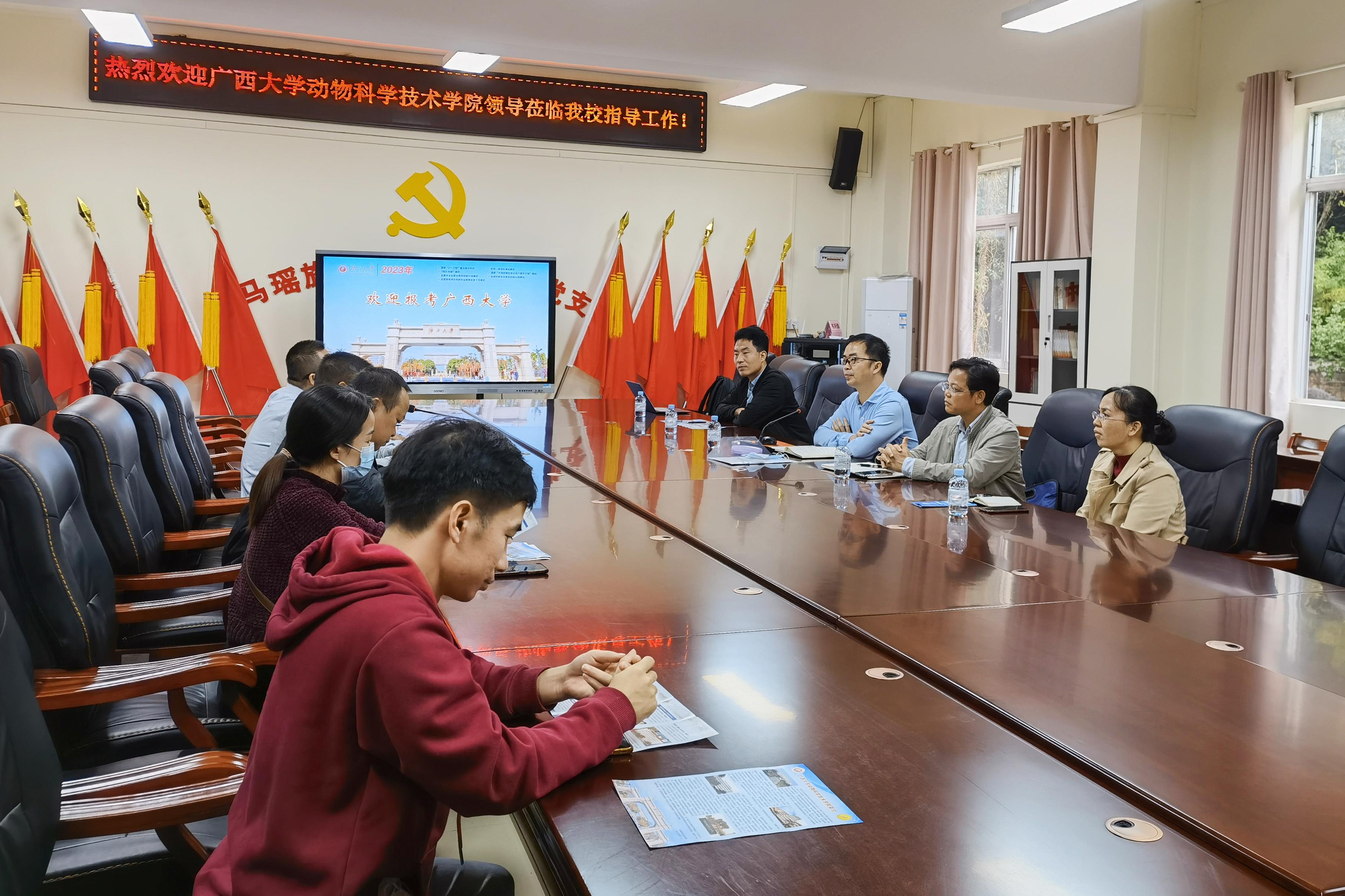 为进一步加大学校招生宣传力度,加强与区内优质中学的沟通联系,11月24日至25日,乐鱼网站常务副院长陆阳清,副院长何家康,动物医学系主任陈樱,动物科学系副主任李辉,团委副书记刘诚先后走访都安瑶族自治县高级中学、巴马瑶族自治县高级中学、凤山县高级中学等3所自治区示范性普通高中。