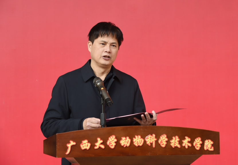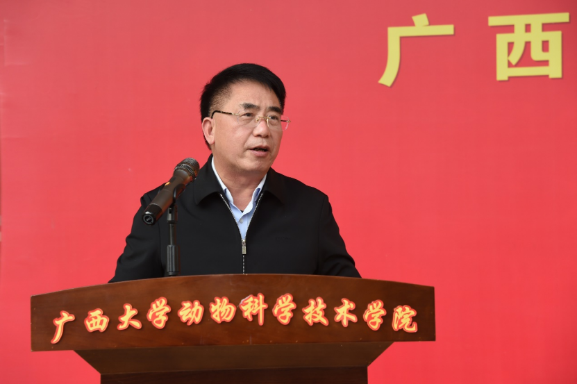 梁纪豪副厅长代表农业农村厅对广西畜禽繁育与疾病防控重点实验室、广西壮族自治区兽用生物制品工程研究中心的揭牌成立表示热烈祝贺。梁副厅长引用了习近平总书记在中央农村工作会议的讲话精神,指出“全面推进乡村振兴、加快建设农业强国,是党中央着眼全面建成社会主义现代化强国作出的战略部署。我们要加快建设农业强国,要紧盯世界农业科技前沿,大力提升我国农业科技水平,加快实现高水平农业科技自立自强,要以农业关键核心技术攻关为引领,以产业急需为导向,发挥新型举国体制优势,整合各级各类优势科研资源,强化企业科技创新主体地位,构建梯次分明、分工协作、适度竞争的农业科技创新体系。要打造国家农业科技战略力量,支持农业领域重大创新平台建设”。广西的生猪、家禽生产规模位于全国前列,饲料产量也连续3年位居全国第三。乐鱼网站拥有一流的人才培养体系,师资力量雄厚。广西畜禽繁育与疾病防控重点实验室和广西壮族自治区兽用生物制品工程研究中心的成立,必将在推动广西畜牧业快速、高质量发展中发挥更大作用。