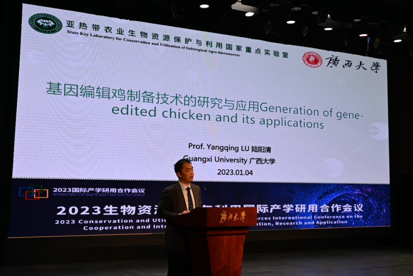 其中, “生物资源保护与利用产学研用国际合作研讨会”由乐鱼网站联合林学院承办,分论坛第一阶段的学术报告由我院常务副院长陆阳清教授主持。共邀请了国内外5位专家进行学术报告,围绕畜禽育种和健康养殖展开研讨。来自加拿大阿尔伯塔大学Leluo Guan教授从提高牛可持续发展的新型技术方面做了“提高牛生产可持续性的新型组学解决方案”的精彩报告;河南守望之境生物技术公司刘红波博士的报告“体细胞核移植技术在农业、生物医学及伴侣动物克隆中的商业应用”对近年来团队利用克隆技术成功克隆的牛、羊、宠物等动物的产业化与应用进行了展示;我院陆阳清教授的“基因编辑鸡的研究与应用”报告,充分展示了课题组近年来在国内外首次建立了高效的鸡原始生殖细胞分离培养体系,为家禽种质资源保存和新品种创制提供了细胞平台。针对畜禽健康养殖,来自美国密苏里大学的Wenjun Ma教授做了题为“北美猪流感:现状、挑战和跨种感染”,从猪流感的流行现状、跨种传播等进行了深入的讲解,并提出预警机制。中国农业大学徐闯教授根据多年来从事奶牛群发代谢病的致病机理、早期预警、群防群控、技术标准等技术产品的研发推广工作,进行了“天然植物提取物在围产期奶牛代谢病防控中的应用”的精彩报告。