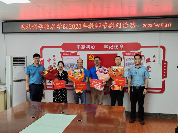 39个教师节来临之际,2023年9月8日上午,学院党委书记韦小强、院长陆阳清慰问教职工代表赵云翔、韦祖樟、宋子仪和李珣四名老师,为他们送上鲜花和慰问金,向他们致以节日的祝贺,并通过他们向全院教师致以节日的祝福。希望全院教职工不忘立德树人初心,牢记为党育人为国育才使命,共同建设好乐鱼网站,为培养新时代“五有”领军型人才作出更大贡献。慰问活动由副院长宁鹏飞主持。