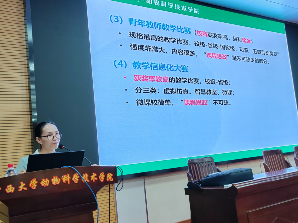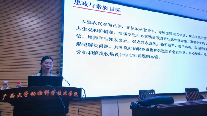 黄艳娜教授以其《家畜环境卫生与牧场设计》课程思政建设为例,分享了如何巧妙地将思政案例融入教学中。她强调,思政案例应紧密结合广西畜牧业的高质量、绿色发展战略,确保具有鲜明的地方特色,以此培育学生的农业情怀,提高学生对本专业的自信与自豪。