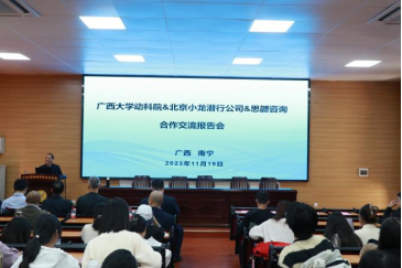 11月19日下午15时,北京小龙潜行科技有限公司、思勰咨询“产学研”合作交流报告会在我院318报告厅举行。本次交流会邀请了北京小龙潜行科技有限公司CEO鞠铁柱、研发总监张兴福、产品化总监黄平和思勰咨询创始人陈兴,共同探讨了生猪养殖数智化的发展趋势和挑战。陆阳清院长、何家康副院长以及近百名师生参加交流会,会议由兰干球教授主持。