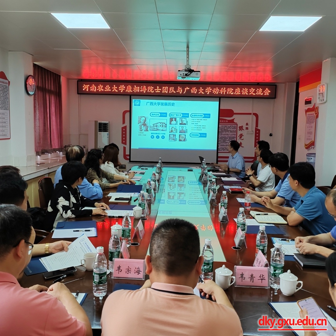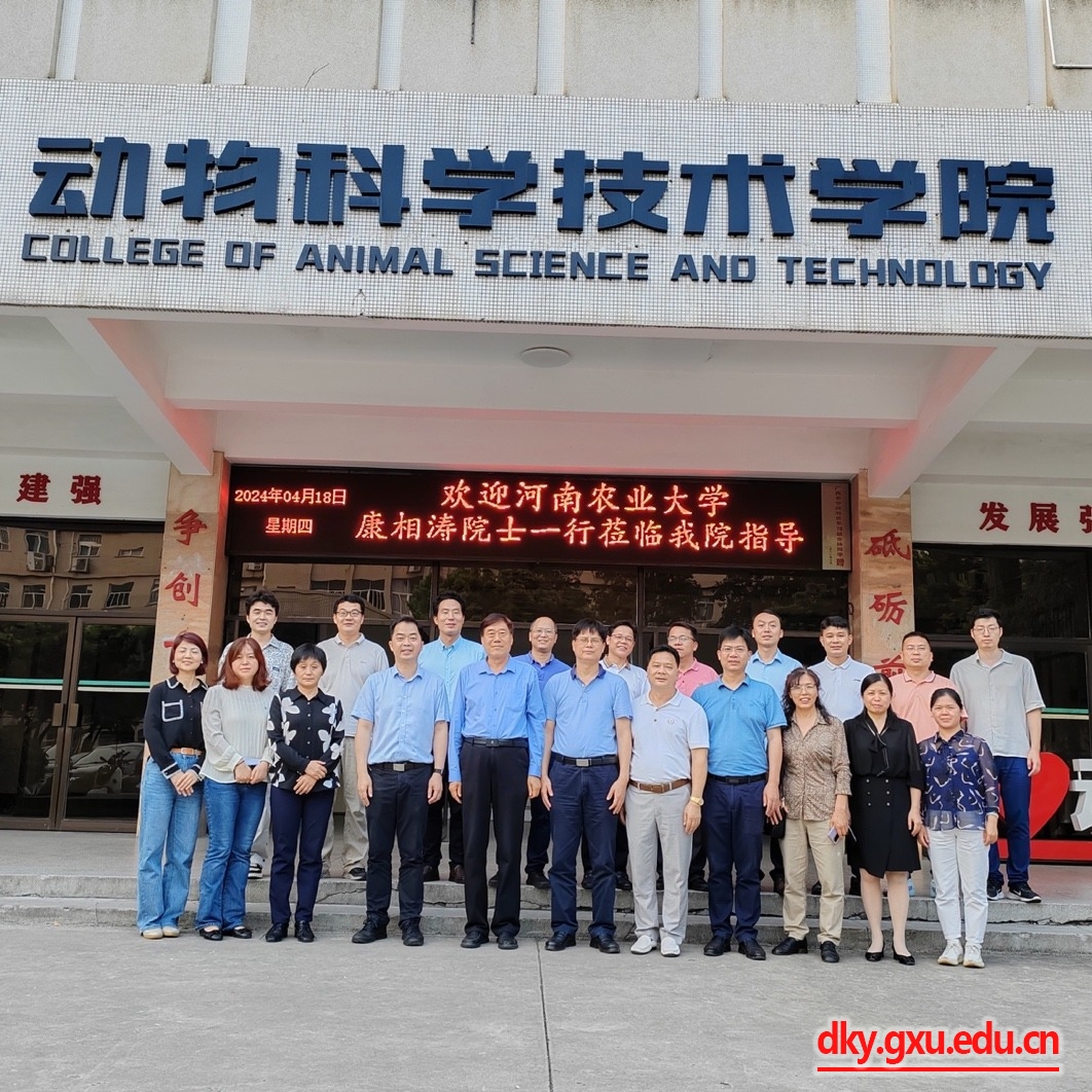 4月18日,中国工程院院士、河南农业大学动物科技学院康相涛教授与广西富凤农牧集团有限公司李非董事长一行11人到乐鱼(中国)调研交流,乐鱼(中国)领导及教师代表在学院302会议室与康相涛院士团队、广西富凤集团代表就共同关心的科研平台建设、人才培养、科学研究和校企合作等事宜进行座谈交流。座谈会由乐鱼(中国)院长陆阳清教授主持,广西大学原副校长罗廷荣教授,乐鱼(中国)党委书记韦小强老师,副院长何家康教授、韦祖樟教授,教师代表杨秀荣教授、李辉副教授、宋子仪副教授、欧长波副教授、庄站伟老师参加座谈会。河南牧业经济学院宋素芳教授,河南农业大学动物科技学院孙桂荣教授、韩瑞丽教授、蒋瑞瑞教授、黄河天博士,广西富凤农牧集团有限公司高管韦宗海、苏立燧、韦青华参加座谈会。