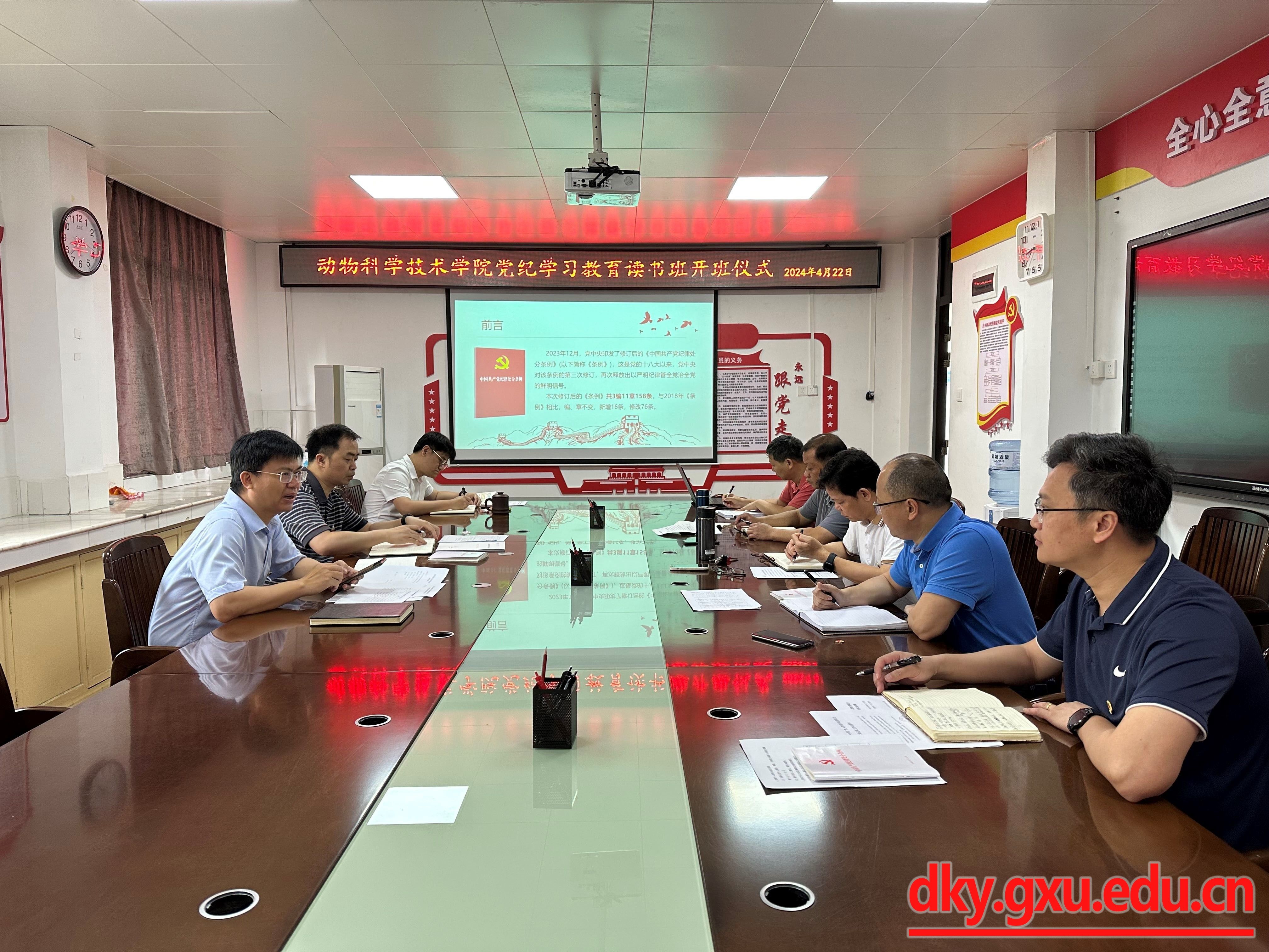 根据中央、自治区、广西大学党委关于党纪学习教育的部署要求,4月22日上午,乐鱼(中国)召开党纪学习教育读书班开班仪式。乐鱼(中国)党委书记韦小强主持开班仪式,并进行新修订的《中国共产党纪律处分条例》(以下简称《条例》)专题辅导报告。