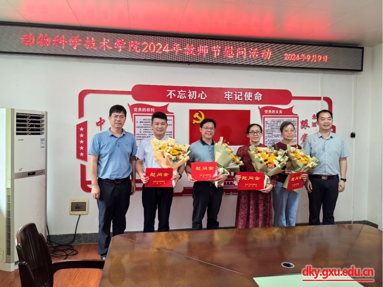 9月9日上午,乐鱼(中国)党委书记韦小强,院长陆阳清代表学校慰问教职工代表何家康、陈樱、许惠艳和庄站伟四名老师,为他们送上鲜花和慰问金,向他们致以节日的祝贺,并通过他们向全院教师致以节日的祝福,希望全院教师要牢记习近平总书记关于争做“四有 ”好老师的谆谆教导和殷殷嘱托,践行为党育人为国育才的初心使命。要自觉提升道德修养、人格品质,以德立身、以德立学、以德施教、以德强能,把正确的价值观传授给学生,帮助学生把握好人生方向。要弘扬教育家、科学家精神,提升教学质量和科研能力,争做业务先锋,争当工匠之师,努力培养德智体美劳全面发展的社会主义建设者和接班人。慰问活动由副院长蒋钦杨主持。