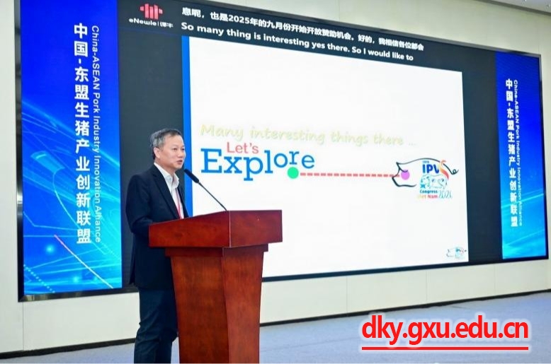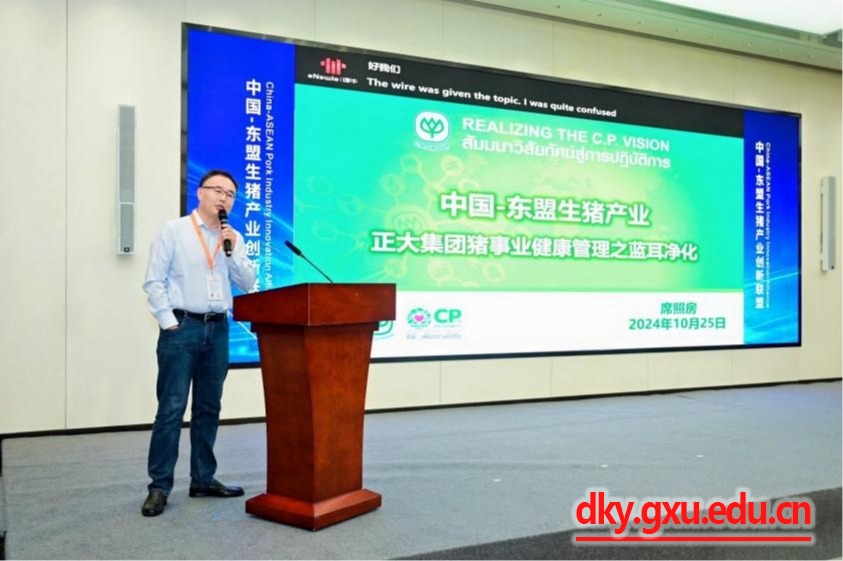 10月25日下午,一场旨在整合中国-东盟各国生猪产业技术、人才和市场等资源,推动中国-东盟生猪产业高质量发展的创新联盟成立大会在成都天府国际会议中心举行。本次联盟活动由广西大学、泰国朱拉隆功大学、越南胡志明农林大学、默沙东、广西扬翔集团股份有限公司等单位倡导,邀请了来自越南胡志明农林大学Nguyen Quang Thieu教授、泰国朱拉隆功大学Psdet Tummaruk教授、越南Greenfeed集团Michael Aksel Ellermann总监、正大集团高层领导席照房博士,以及中山大学陈瑶生教授、中国农业大学周磊教授、广西大学农牧产业发展研究院高级畜牧师沈水宝博士分别就各自国家在生猪产业领域的现状、挑战与发展趋势等进行了分享与交流。会议由乐鱼网站赵云翔教授和刘正旭博士主持。