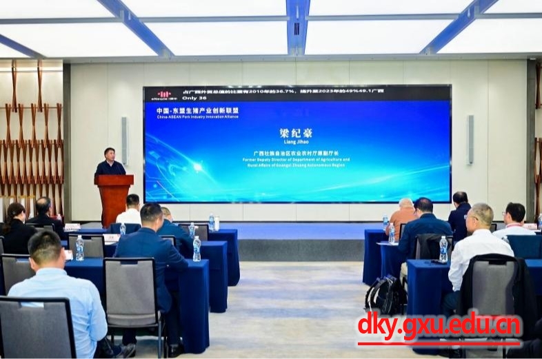 会议伊始,广西壮族自治区农业农村厅原副厅长梁纪豪先生致辞。他表示,广西与东盟海陆相邻,具有“一湾相挽十一国,良性互动东中西”的独特区位,近年来与东盟国家双边经贸关系高质量发展取得明显成效。他指出中国与东盟国家在畜牧业领域的合作具有广阔的前景和巨大的潜力,中国-东盟生猪产业创新联盟的成立,将为双方的合作提供更加坚实的平台和更加有力的保障。