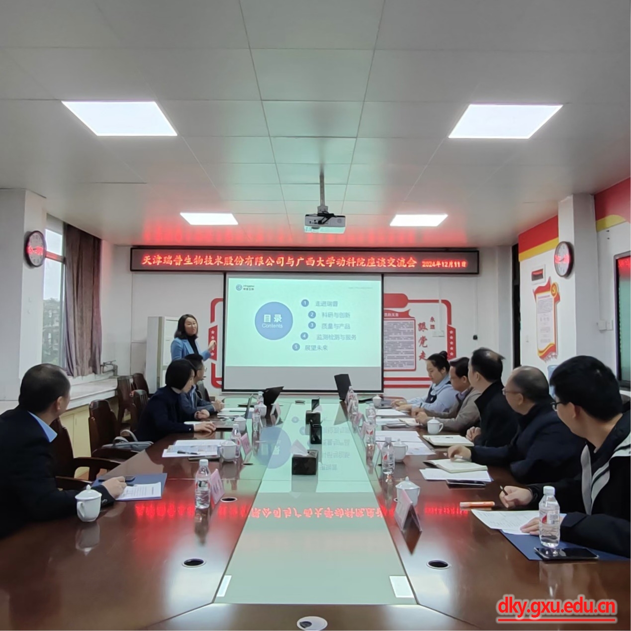 座谈中,乐鱼网站院长陆阳清对天津瑞普生物技术股份有限公司的到访表示热烈欢迎,并进一步介绍了广西大学历史、学院的发展历程、产教融合、学科建设、社会服务及国际交流等情况。他表示希望未来能与天津瑞普生物技术股份有限公司在科学研究、产业技术服务、人才培养等方面开展更广泛、更深入的合作,实现共赢。