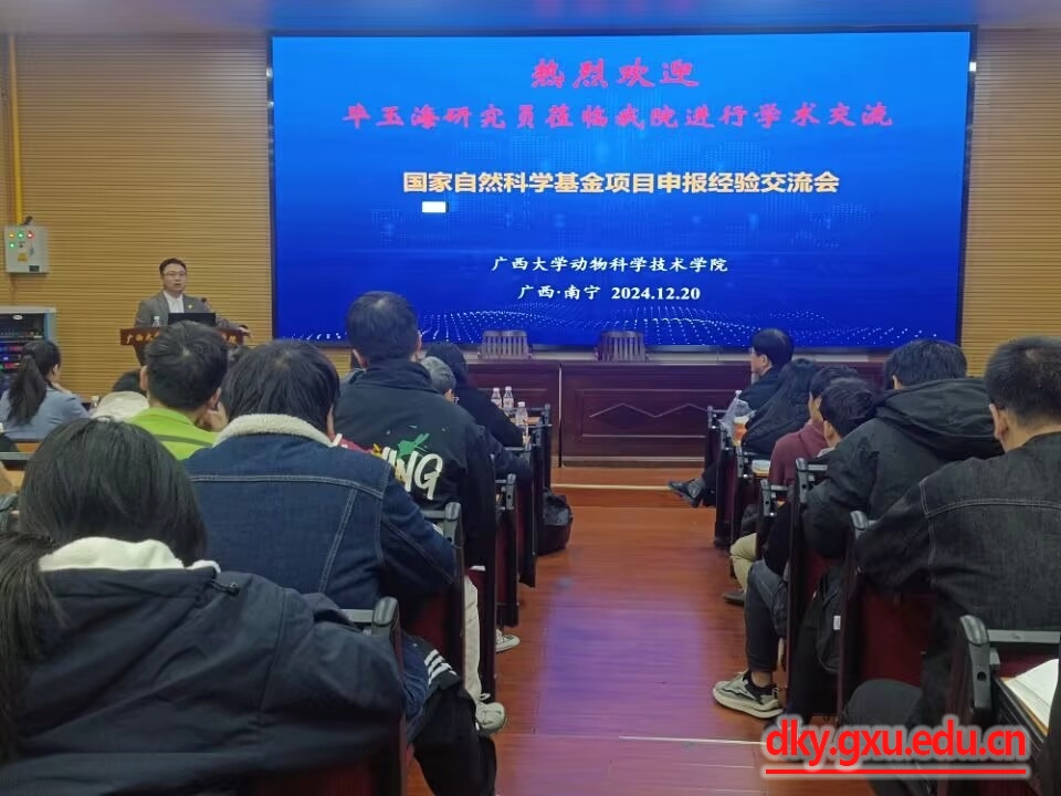 12月20日上午,中国科学院微生物研究所毕玉海研究员受广西大学乐鱼(中国)的邀请在学院318报告厅作题为“禽流感病毒的跨种传播机制与高风险病毒预警”的学术报告。乐鱼(中国)陆阳清院长、罗廷荣教授、陈樱教授等教师以及200多名师生参加报告会。报告会由乐鱼(中国)副院长何家康教授主持。