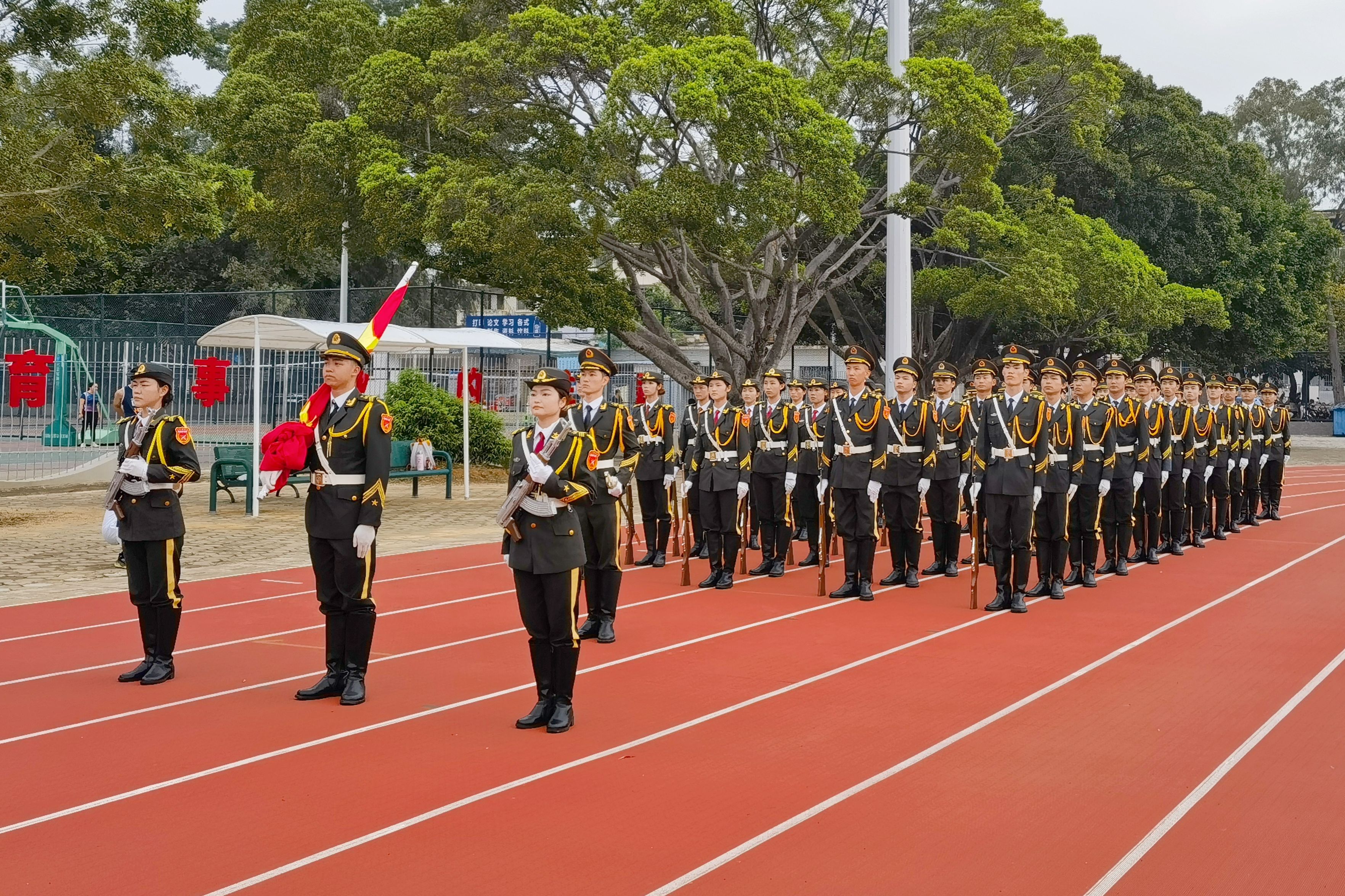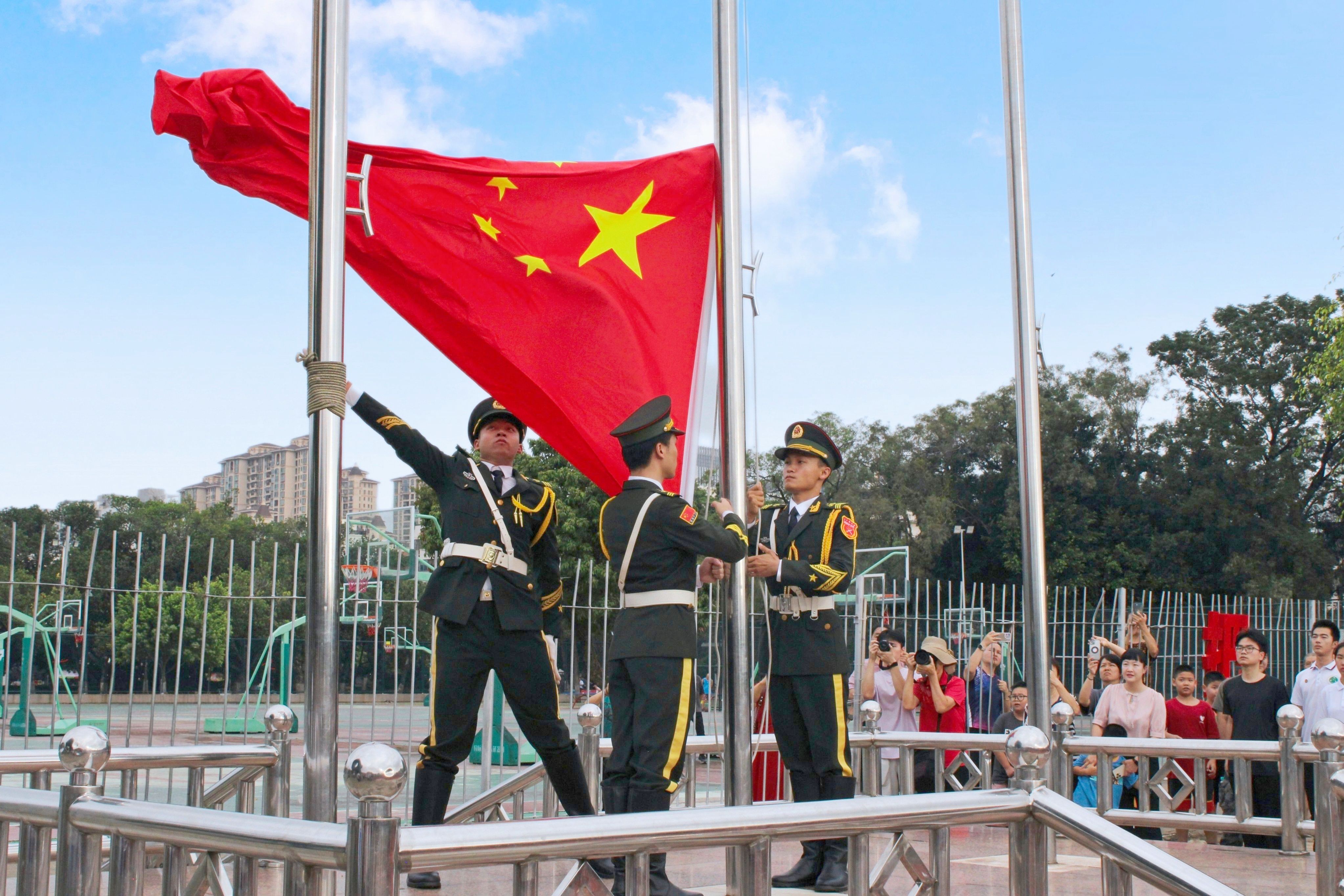 在全场师生的注目下,英姿飒爽的国旗护卫队队员,迈着整齐划一、铿锵有力的步伐,护送鲜艳的五星红旗进场。“起来,不愿做奴隶的人们,把我们的血肉,筑成我们新的长城……”全场师生精神抖擞、庄严肃穆,齐声高唱国歌,注视着鲜艳的五星红旗冉冉升起。