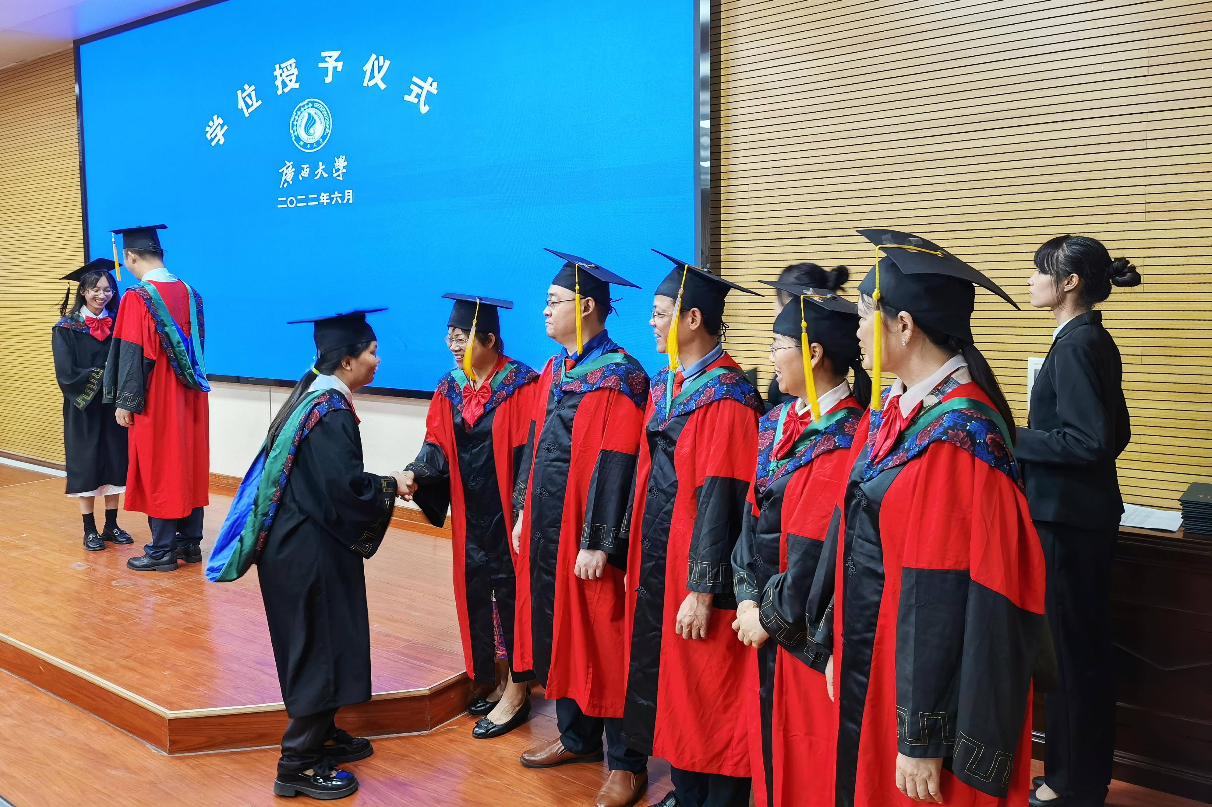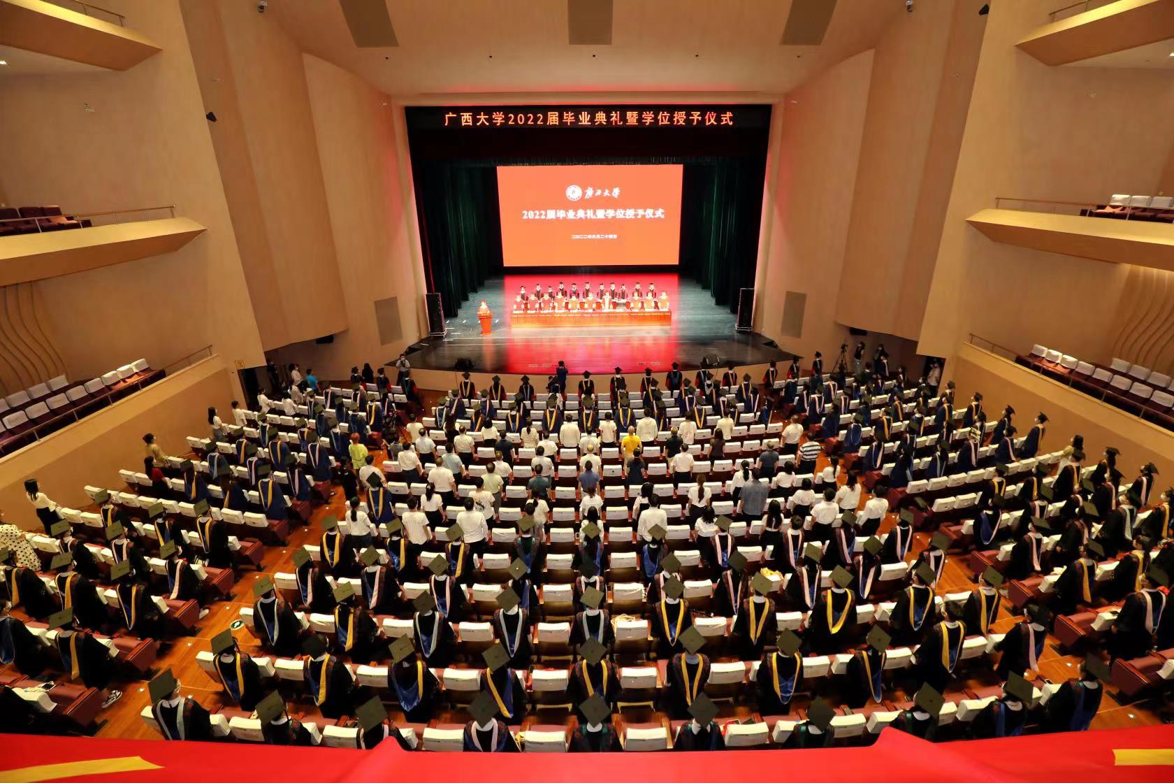 “复兴中华,发达广西”“努力,努力,大家一齐努力”,毕业典礼暨学位授予仪式在奏唱校歌声中落下帷幕。