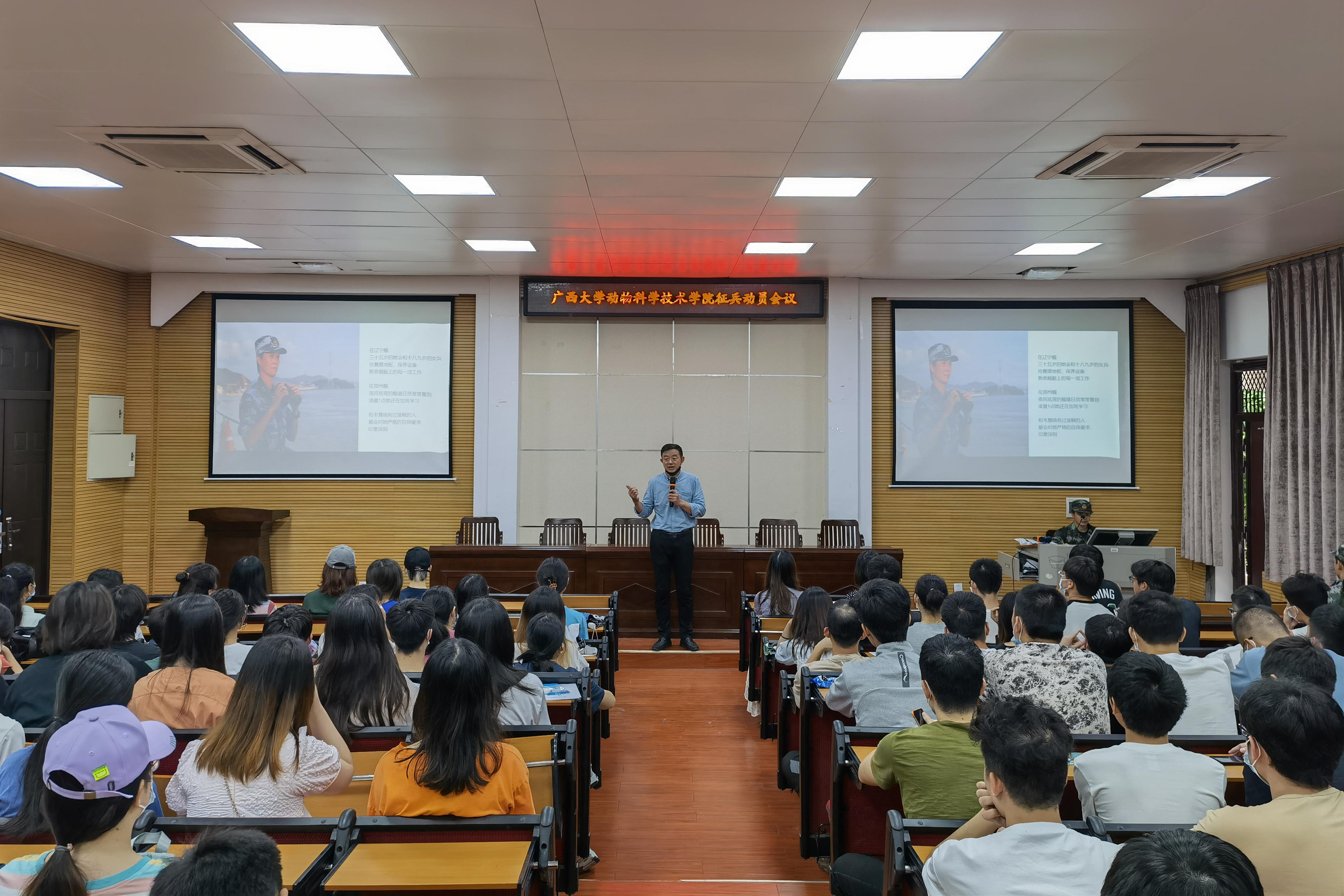 宣讲会上,陈榕平老师不仅就报名流程、入伍待遇、优抚政策等方面进行了详细解读,而且结合实际案例,说明了当代有志青年参军报国的重要意义和个人收获,鼓励同学们积极响应国家号召,携笔从戎,报效祖国。