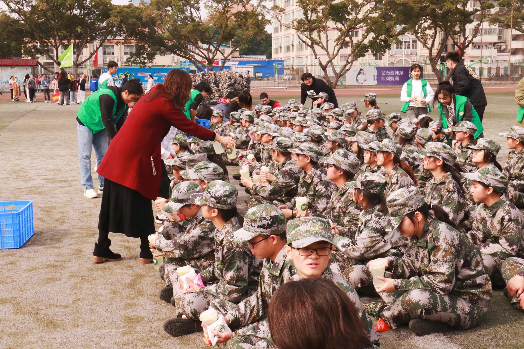 团学组织学生骨干、班主任助理、班级指导员、学生党员一同向2021级军训参训学生和带训教官赠送了慰问品,使同学们深深感受到全院师生对大家的关心和爱护。