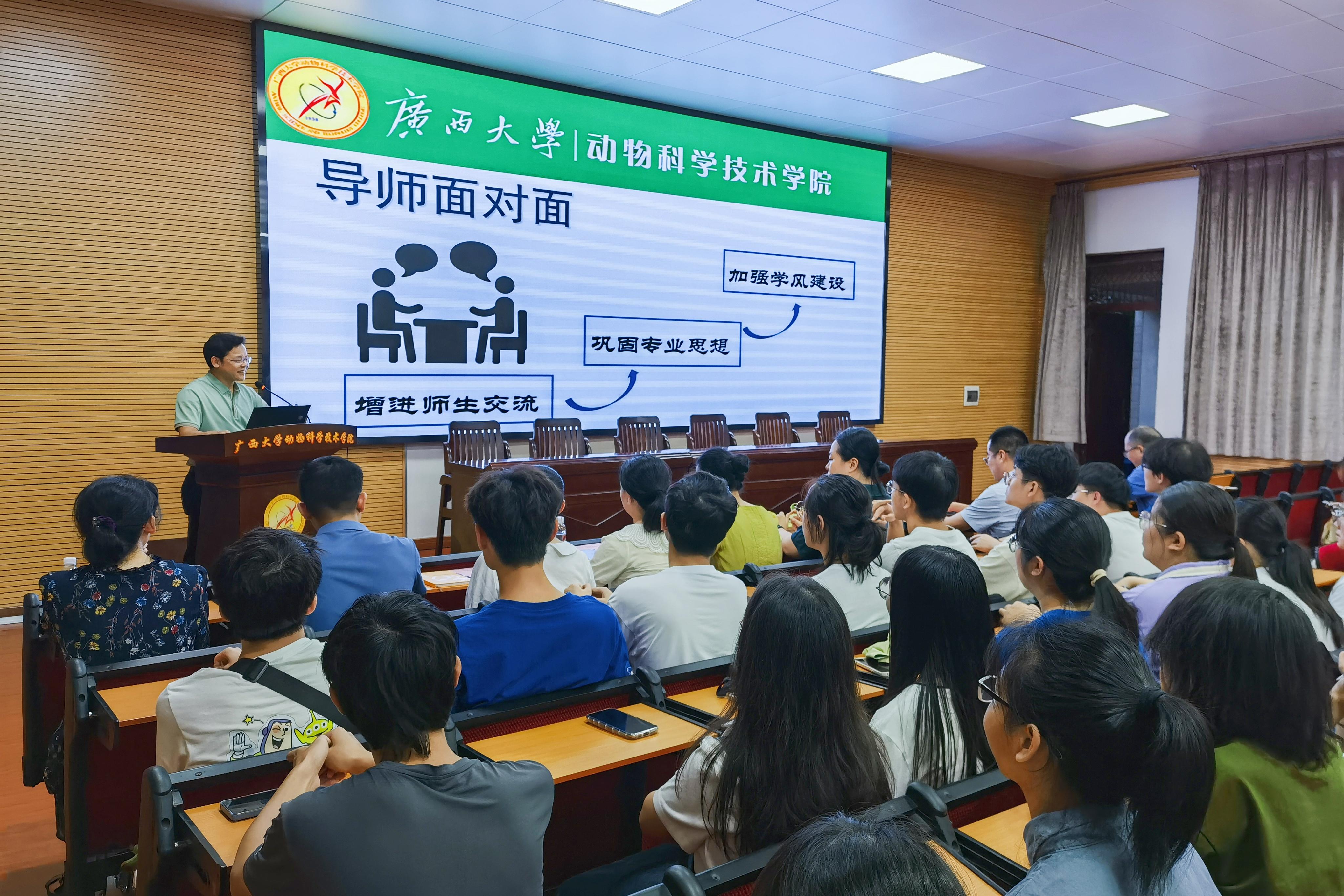 为巩固专业思想,加强学风建设,增进师生交流,营造学术氛围,7月5日晚上,乐鱼网站在学院318报告厅举办第二季“导师面对面”学术沙龙(第二场),邀请何家康、韦祖樟、陈樱、王晓晔、于美玲、方芳、韦懿仙7位导师嘉宾到场分享个人经历、人才培养和科研方向,并与学生互动交流,共同探讨学业规划、职业发展和个人成长。动物医学专业2022级全体本科生参加此次活动。