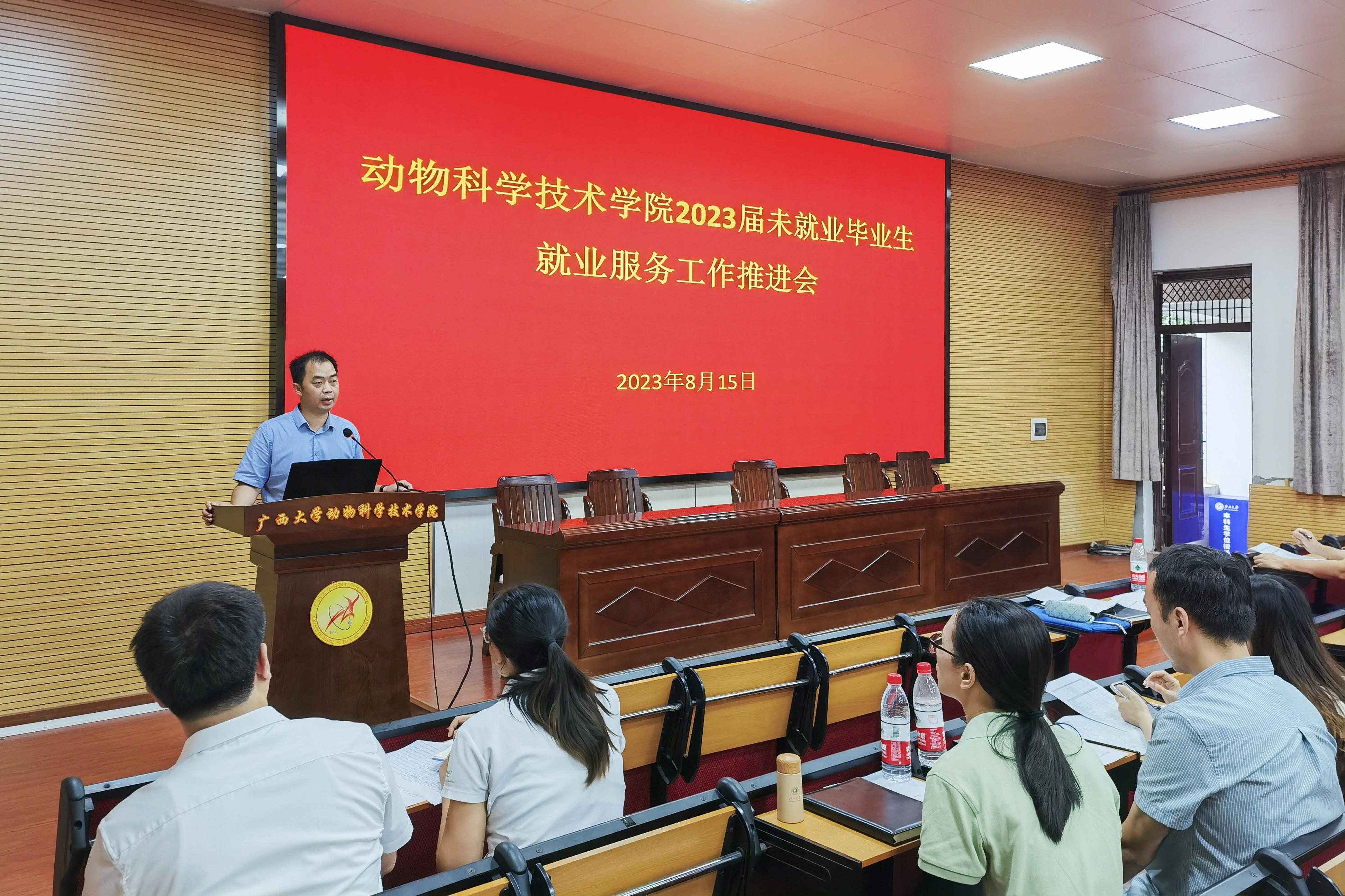 为贯彻落实党中央、国务院关于高校毕业生就业工作的决策部署,全力推进毕业生更加充分更高质量就业,8月15日上午,乐鱼网站在学院318报告厅召开2023届未就业毕业生就业服务工作推进会。乐鱼(中国)党委书记韦小强,院长陆阳清,党委副书记沙建,副院长宁鹏飞、韦祖樟,以及专职辅导员、研究生导师、毕业班级班主任参加会议。