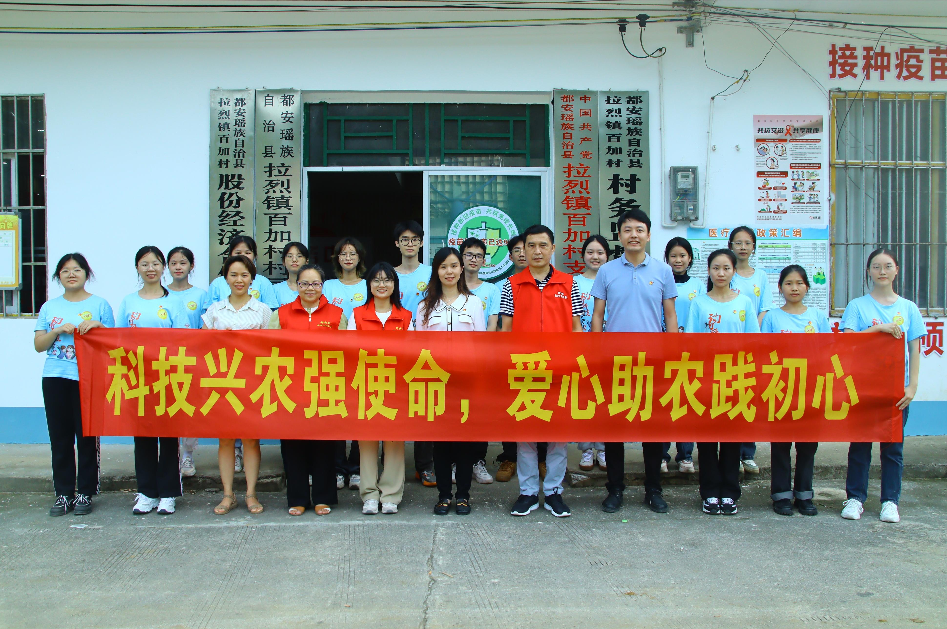 7月21日至22日,乐鱼网站赴都安县开展“科技兴农强使命,爱心助农践初心”暑期社会实践活动。乐鱼(中国)院长助理、动物科学系主任蒋钦杨,团委书记李丽娜,团委副书记刘诚,专任教师王冬英、张瑞门,以及10余名本科生、研究生参加此次活动。