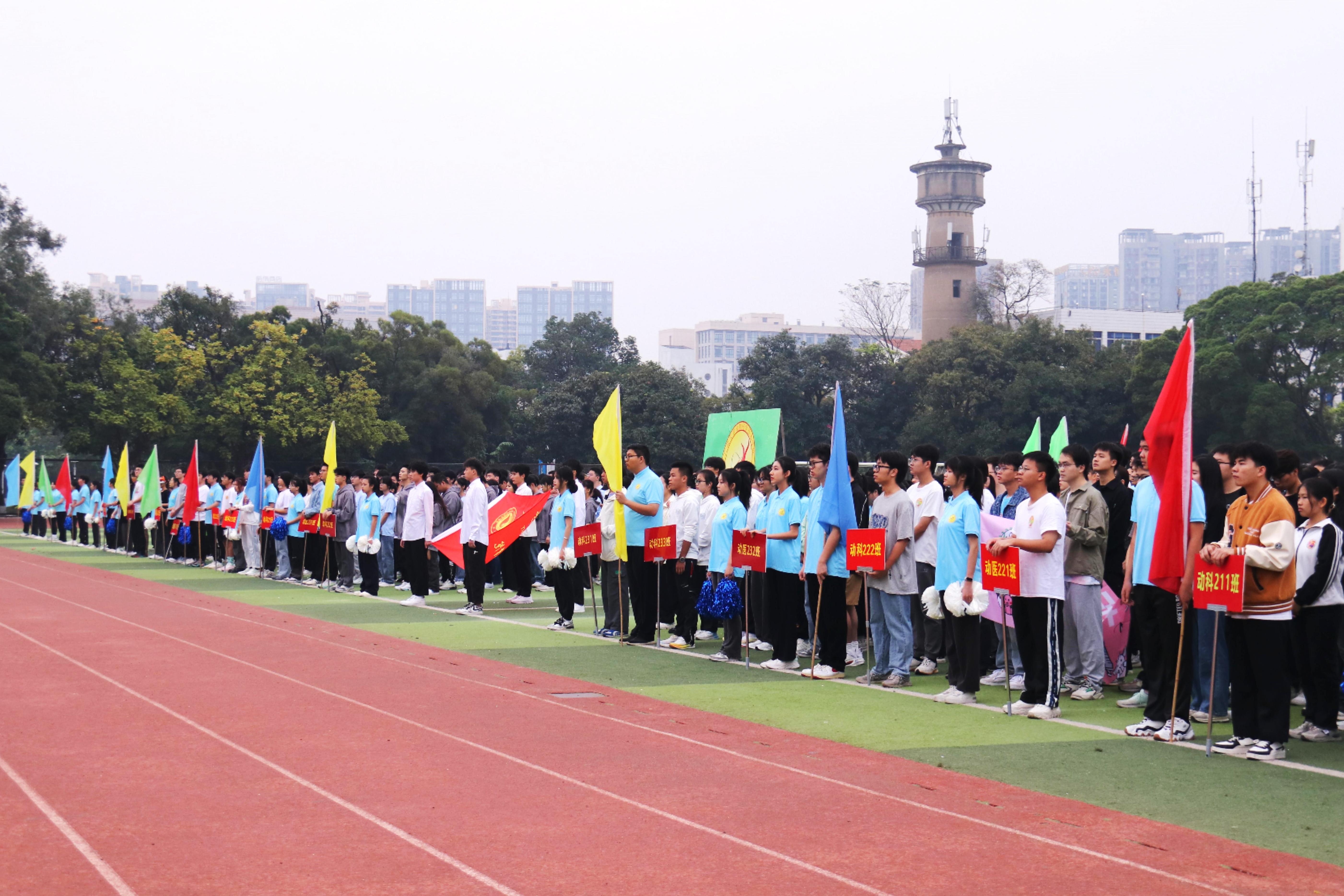 11月25日,乐鱼网站第二十七届运动会在西校园田径场隆重举行。乐鱼(中国)党委书记韦小强,院长陆阳清,党委副书记沙建,院长助理、动物科学系主任蒋钦杨,团委书记李丽娜,团委副书记刘诚,辅导员崔月明、彭可可、邹佳琪、马朝阳,以及全院本科生、研究生参加此次活动。