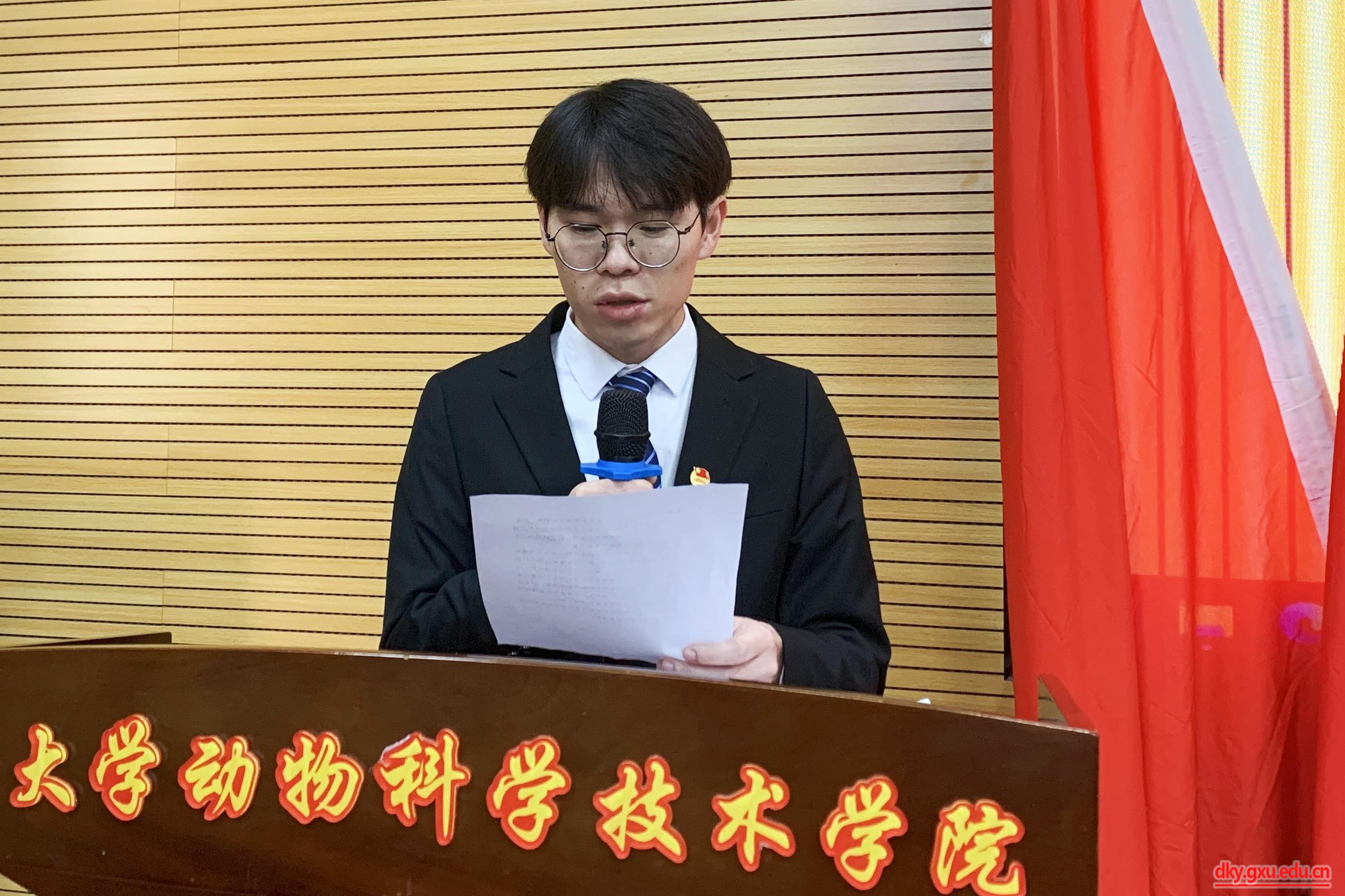广西大学研究生会主席团成员廖文杰同学、计算机与电子信息学院研究生会主席团成员王子威同学分别在大会上致辞。