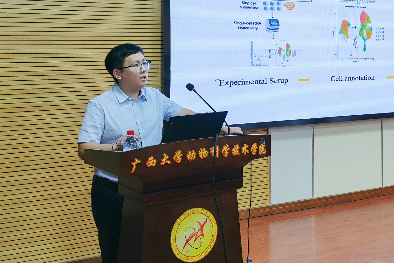 崔焕先、李朋、王苑、司雪阳4位老师分别先后就动物遗传育种与繁殖方向研究前沿、兽医方向研究前沿、动物营养与饲料科学方向研究前沿,以及研究生教育招生政策为在场师生作主题报告,详细介绍北京畜牧兽医研究所的科学研究、人才培养、设备平台等方面情况。