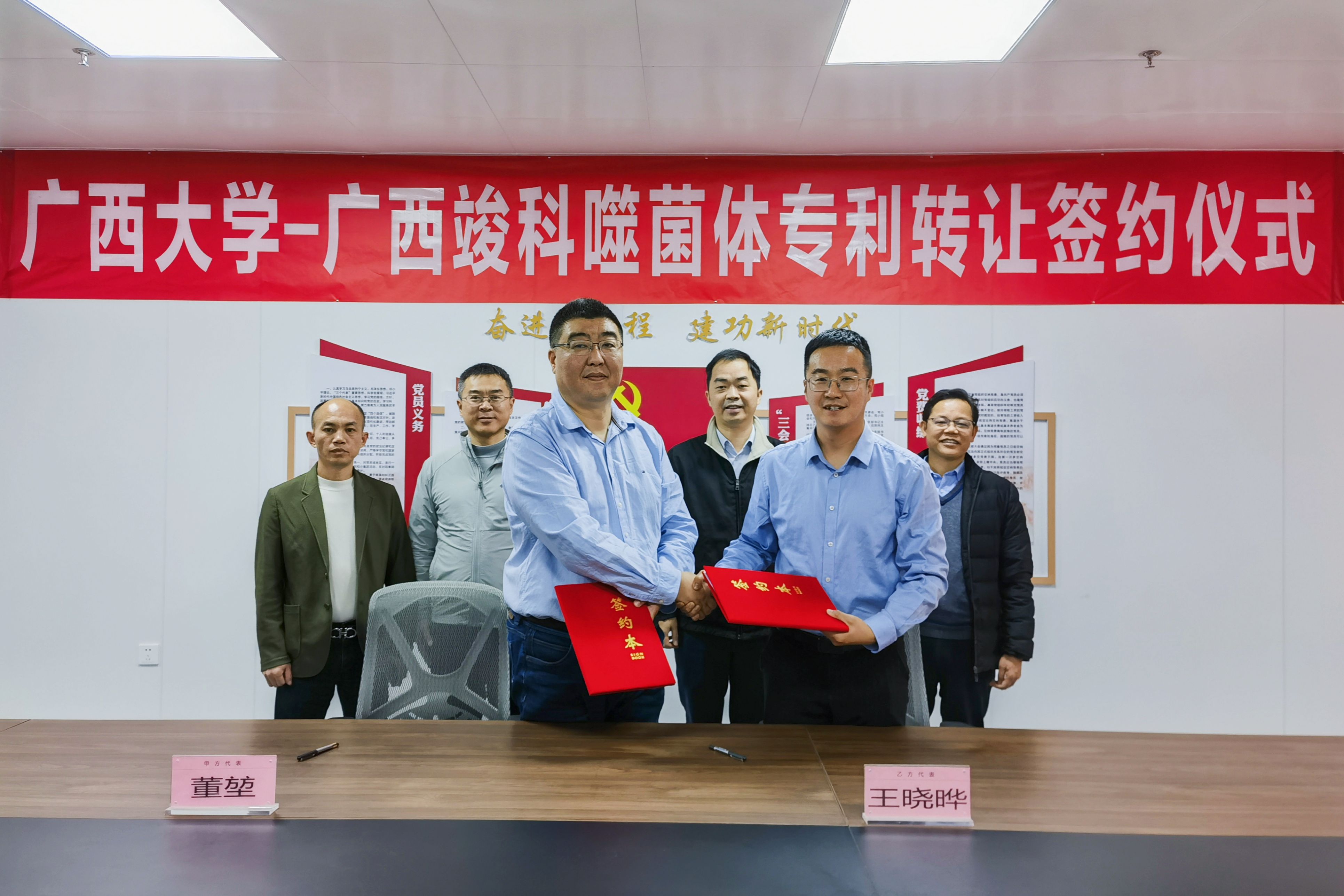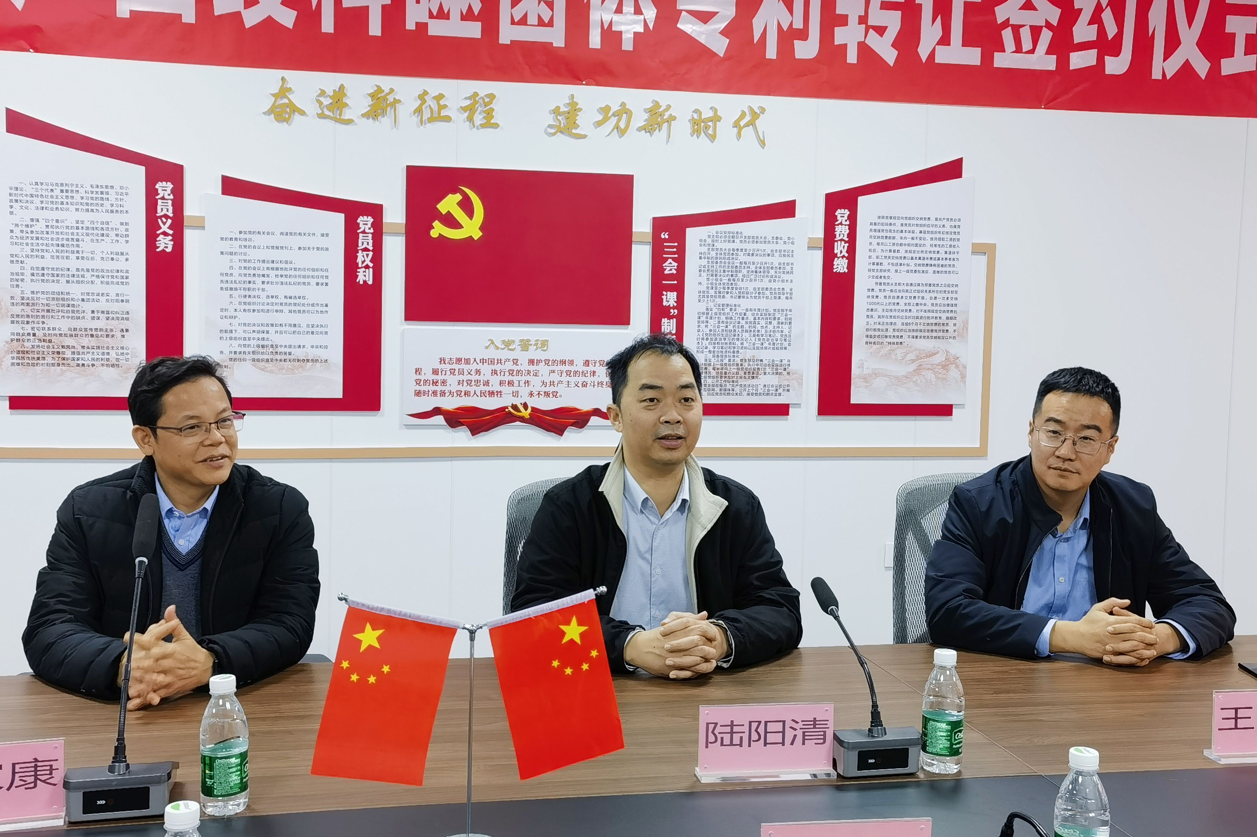 12月24日,乐鱼网站院长陆阳清,副院长何家康,专任教师王晓晔,辅导员刘诚等一行4人前往广西竣科生物工程有限公司开展访企拓岗,并举行专利转让签约仪式。