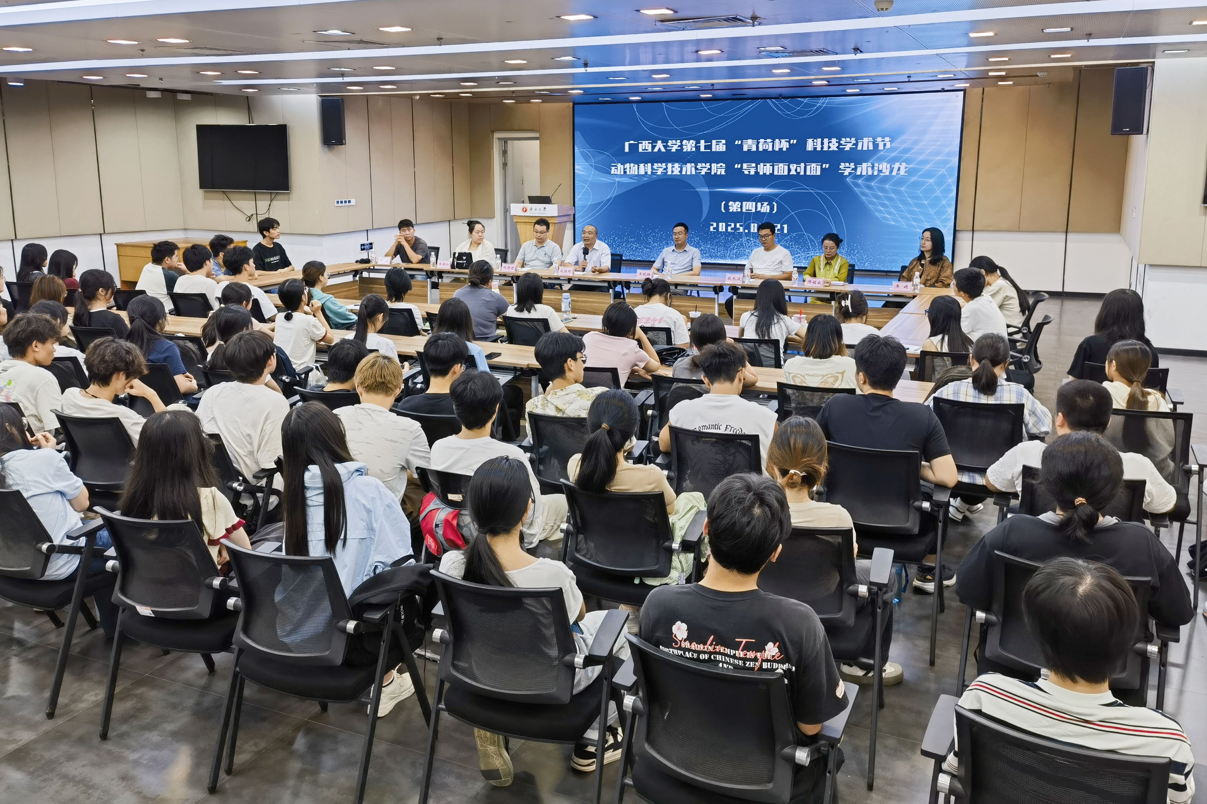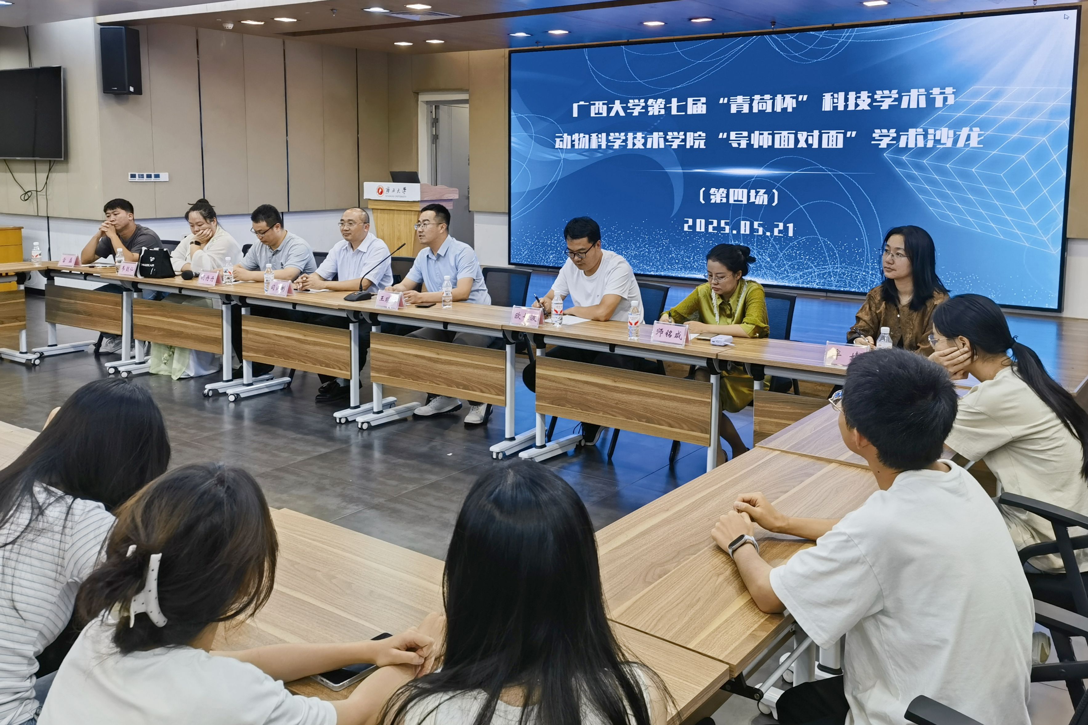 为巩固专业思想,加强学风建设,增进师生交流,营造学术氛围,5月21日晚上,乐鱼网站在大学生活动中心三楼会议厅举办第三季“导师面对面”学术沙龙(第四场),邀请司红彬、欧长波、王晓晔、胡丹丹、师铭咸、韦懿仙、牟婧、雷磊8位导师嘉宾到场分享个人经历、人才培养和科研方向,并与学生互动交流,共同探讨学业规划、职业发展和个人成长。动物医学专业2024级全体本科生参加此次活动。