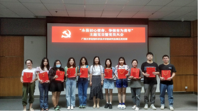 6月27日19时,乐鱼网站研究生第五党支部在广西大学国家重点实验室北107室举办“永葆初心使命,争做有为青年”主题党日活动。进一步抓细、抓实毕业生党员的教育工作,引导支部党员不忘初心、牢记使命,争做堪当民族复兴大任的新时代有为青年,充分发挥党员的先锋模范作用。活动共三个部分:党史知识趣味问答,毕业生党员经验交流分享和党支部书记寄语。本次活动,支部党员积极参与各环节,取得了良好效果。