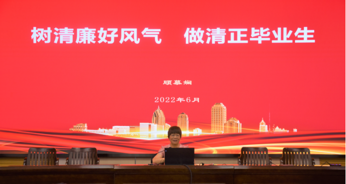 随后,学院党委书记顾慕娴作题为“树清廉好风气 做清正毕业生”的廉洁教育专题党课。他从毕业生廉洁教育的必要性、保持对‘腐蚀’‘围猎’的警觉、年轻干部违纪违法警示案例这三个部分,提醒党员不管在何种岗位,都要对党忠诚,争做廉洁守法诚信之人。最后,他向毕业生党员寄予了美好的祝愿。