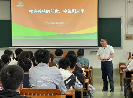 高远飞在本科生《猪生产学》课堂现场为我院20级本科生作“楼房养猪”案例的系统化讲解。高远飞基于集约化养殖的发展与当下猪生产的社会背景,为同学们解答了“楼房养猪”的来历、优势及相关的智能化建设,并提出了未来养猪行业的可行性探索。增强了课程的趣味性,激发了同学们的专业兴趣,让同学们在近距离与企业交流的过程中更加深刻地了解行业前景,同时也引导本科生多元化思考产业新型技术开发的方向,为培养创新型专业人才奠定基础。