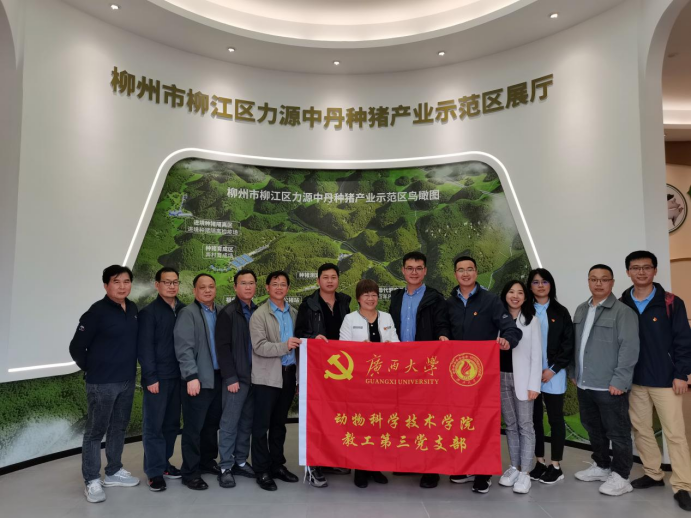 为调研区内龙头农牧企业对高校的人才和技术需求,2023年4月11日,在广西大学动物科学技术学院党委书记顾慕娴的带领下,学院副院长何家康教授、教工第三支部书记王晓晔副教授及教工第三支部全体党员同志一行走访柳州市柳江区力源中丹种猪产业示范区,与力源种猪事业部开展“产教融合”主题党建活动,并就人才培养和技术合作开展深入交流。