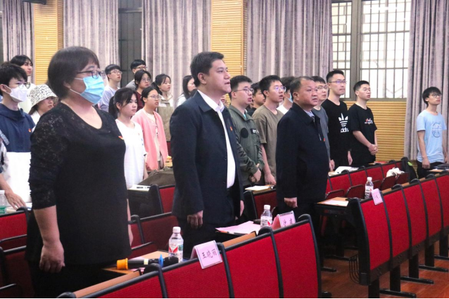 为深入学习贯彻党的二十大精神,强化党员的思想教育,履行入党手续,2023年5月14日上午8时,乐鱼(中国)在学院318报告厅举行了预备党员宣誓仪式。学院党委副书记沙建老师,党委委员、副院长宁鹏飞老师,党委委员王晓丽老师,辅导员彭可可老师,第53期预备党员培训班全体学院参加仪式,本次宣誓仪式由院辅导员彭可可老师主持。