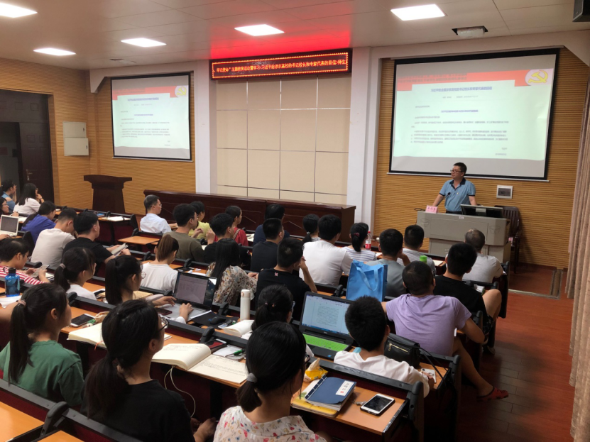 9月19日晚,教工第二党支部与预防兽医学研究生创新团队举行了“不忘初心、牢记使命”主题教育暨学习《习近平给涉农高校的书记校长和专家代表的回信》师生座谈会。本次座谈会是教工第二党支部主题教育系列活动的启动仪式,为全院教工支部深入开展主题教育活动做出了表率。“双带头人”工作室支部书记黄伟坚教授介绍了习近平总书记的回信内容。他结合当前我国“非洲猪瘟”疫情防控的严峻形势及生猪产业受到的严重冲击,勉励同学们要树立“知农爱农”的情怀,巩固专业思想,深刻认识到兽医专业在保障国家粮食安全和人民健康中发挥的重要作用,要以实际行动贯彻落实回信精神,绝不辜负总书记对培养新型农科人才的殷切期望,踏踏实实做学问,让自己的理想播撒在充满希望的田野上。研究生第五党支部副书记陆颖同学代表全体参会学生表示,大家一定要加强学习专业知识,努力掌握实验技能,同时希望有更多的机会与支部的老师们交流科研心得,帮助同学们提高论文写作水平。