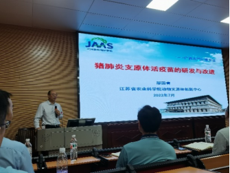 邵国青研究员首先介绍了猪肺炎支原体活疫苗的发展以及研究现状,经过何正礼、金洪效、邵国青等三代科研人员长达30年的实验室与临床试验,证明168株免疫原性好、安全稳定。随后,介绍本研究团队采用“无细胞培养-本种动物回归交替传代”致弱技术,攻克了强毒株致弱后仍保持免疫原性的难关。最终成功研发猪肺炎支原体活疫苗,显著优于国外灭活疫苗,整体技术居国际领先水平,疫苗转让4家国内兽用生物制品企业,产品在全国应用已超过一亿头份,打破国外垄断,对生猪养殖过程中猪支原体肺炎的防控发会了重要作用,为国家带来巨大的经济和社会效益。