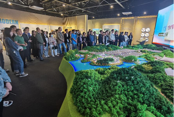 参观师生观看企业宣传片及双鸣谷地图沙盘