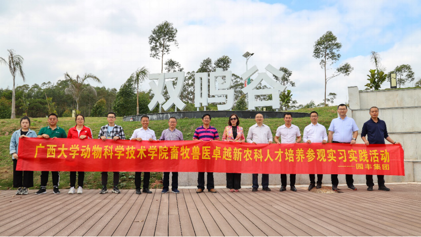 2020年11月19日,为贯彻落实本院培养卓越新农科人才培养的目标,乐鱼网站司红彬副院长、沈水宝副教授组织研究生与广西园丰牧业集团股份有限公司技术骨干等36人参加了到园丰集团的参观实习实践活动。为产业振兴和人才培养出经验做示范,开创互惠共赢新局面。