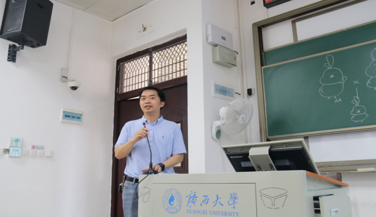 首先,陆阳清副院长进行了动员讲话。他以形象生动的语言,通过丰富的个人经历与人生经验来提升学生的兴趣,同时详细讲解了广西大学的研究生招考录取政策,帮助同学们端正学习态度,确立正确的目标,提升考研自信心。
