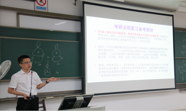 随后,今年成功考上本校的研究生代表吴韬,与大家分享了自己的考研经历与心得,树立了学习榜样,帮助同学们少走弯路。