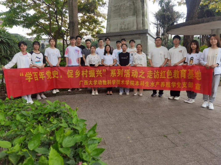 为庆祝中国共产党成立100周年,深入开展党史学习教育,4月14日下午,乐鱼(中国)本科生水产养殖学党支部组织党支部全体党员和入党积极分子,到广西大学校史馆和爱国民主运动纪念碑集中开展主题党日活动。