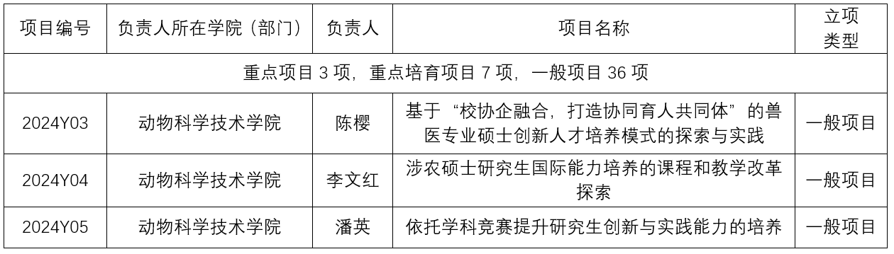 广西大学2024年度研究生教育教学改革倍增计划立项项目名单(节选)