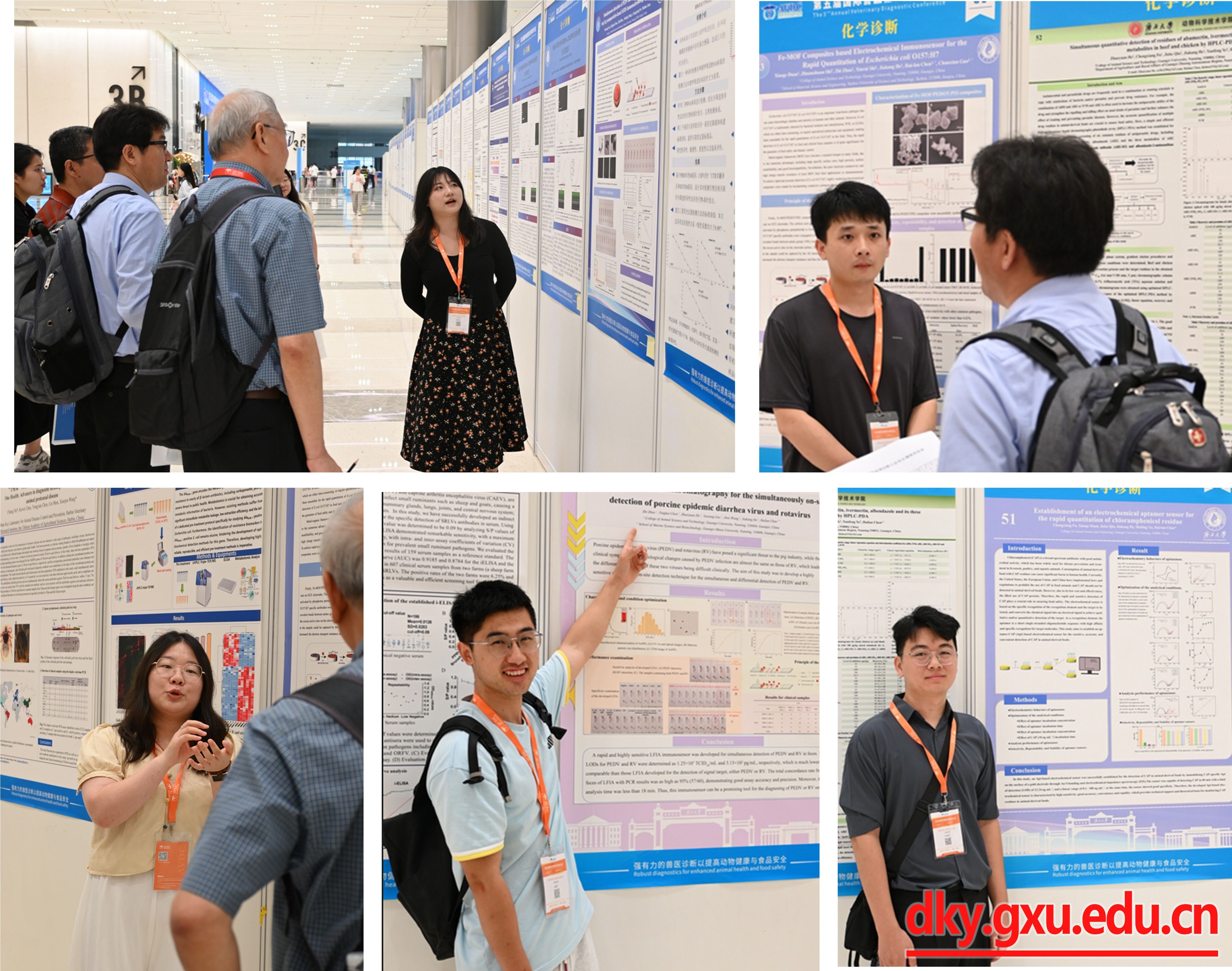 来自中国、美国、英国、荷兰、加拿大、澳大利亚、日本、韩国等国家的120多位嘉宾,为参会代表带来了128场精彩纷呈、内容丰富的主题报告,与广大参会代表分享自己在兽医诊断领域的独到见解和宝贵经验。借此机会,陈海兰教授一行与汇报嘉宾、国际知名专家对兽医检测诊断领域前沿问题进行了积极的交流和探讨,努力推进我校与国内外高校和企业的合作。我院贺兆源等五位研究生所投稿件均被大会录用于大会论文集并以墙报形式向参会同行展示。初步评选后,贺兆源、赵志、段晓鸽和罗雅祥四位同学的墙报进入第二轮现场口头汇报。经过美国堪萨斯洲立大学白建法教授等专家组成的评审委员会从研究深度、应用前景、汇报表现等方面进行综合打分评选后,本次大会所设3个墙报展示三等奖被我院的赵志、段晓鸽和罗雅祥3位研究生包揽,为学院赢得了荣誉和认可。