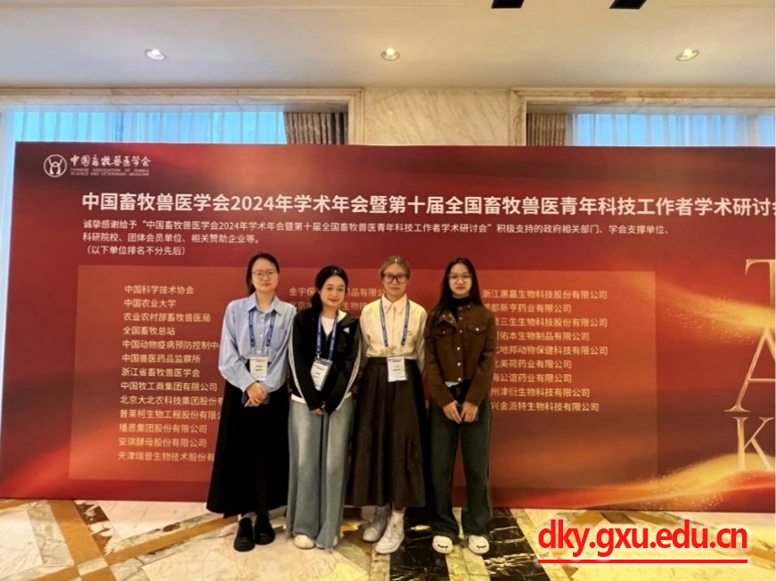 10月25-28日,中国畜牧兽医学会2024年学术年会暨第十届全国畜牧兽医青年科技工作者学术研讨会在浙江省嘉兴市桐乡市举办。会议由中国畜牧兽医学会主办,动物生理生化学分会、动物繁殖学分会等多个畜牧兽医专业相关的学会协办,主题为“基础为本、源头创新、交叉融合”。来自全国畜牧兽医科研、教学、生产及相关领域的专家、学者、企业管理者、在校研究生近600人参加会议,5名两院院士出席大会。乐鱼(中国)赵亚楠、贾茹茹、王云、周东平4位硕士研究生受邀参加了本次会议。
